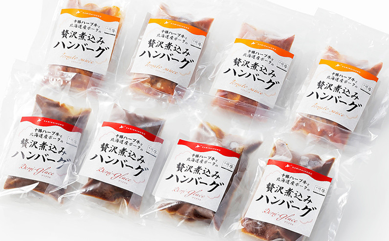 十勝ハーブ牛と北海道産ポークの贅沢煮込みハンバーグ 200g×8個 デミグラスソース トマトソース 北海道産 温めるだけ 小分け 個包装 冷凍 [015-X60] ※オンライン申請対応