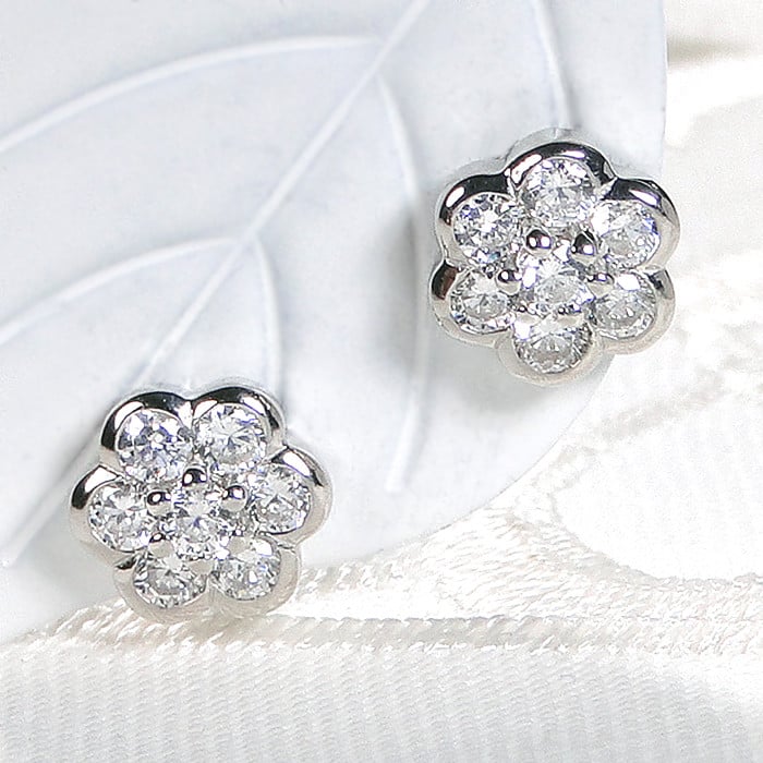 - ピアス プラチナ PT900 ダイヤモンド 0.42ct フラワー 花モチーフ スタッドピアス【f266-pt-d】 ALPAZ109