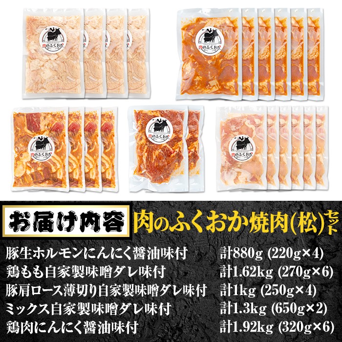 E79005 肉のふくおか 焼肉セット(松) (全5種類・計約6.72kg)鹿児島 国産 豚 ホルモン お肉 味付け おかず 冷凍 味付け 味噌 みそ 味噌ダレ たれ漬け 肩ロース 薄切り バーベキュー にんにく からあげ 唐揚げ チキンソテー まぜまぜ【肉のふくおか】
