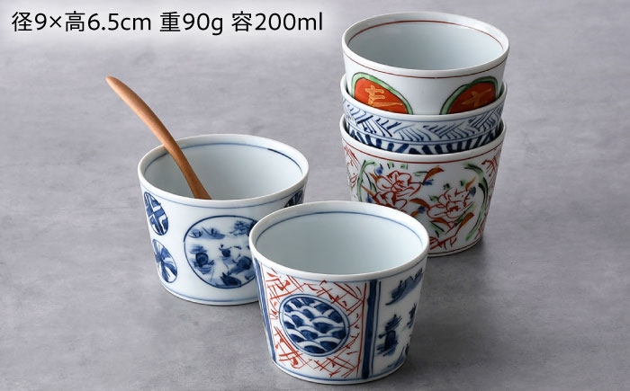 - 【波佐見焼】和柄 そばちょこ 5点セット 丸紋・地紋山水・錦万歴・タコ唐草・赤丸福文【一夢窯】 [XE12]