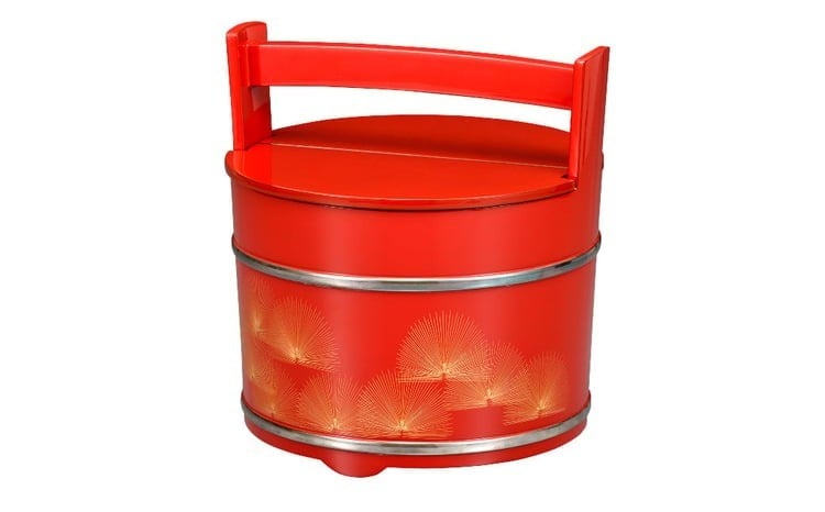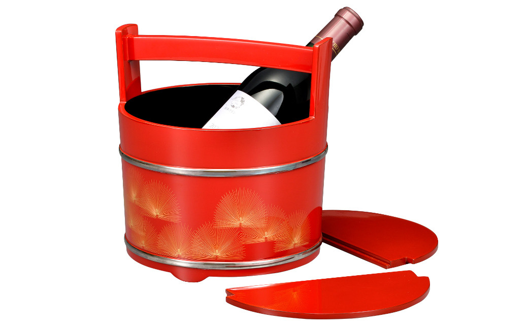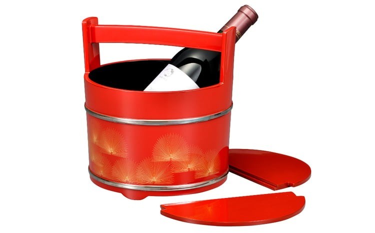 - 輪島塗 ワインクーラーボックス(赤銀帯)寿松沈金