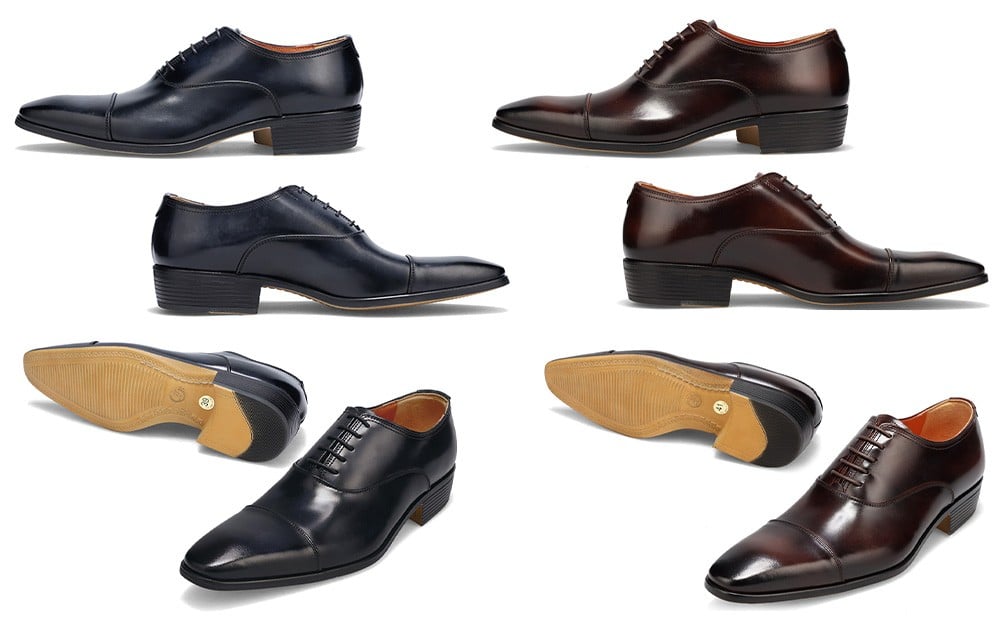ビジネスシューズ 本革 革靴 カンガルー革 紳士靴 外羽根プレーン 7cmアップ シークレットシューズ No.233 ブラック [№5990-0335]