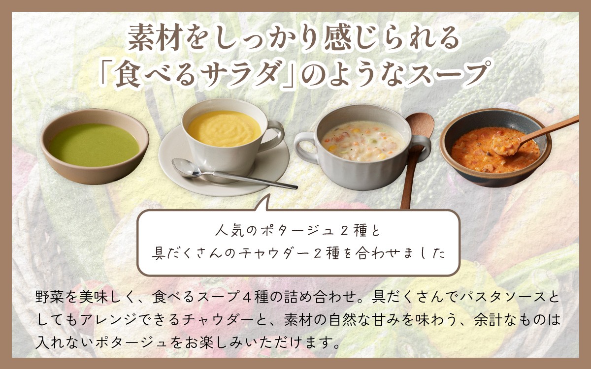 - スープ&ポタージュ4種セット【スープ ポタージュ チャウダー 野菜 サラダ 簡単調理 時短メニュー 冷凍食品 ランチ ディナー おうちごはん レトルト 】