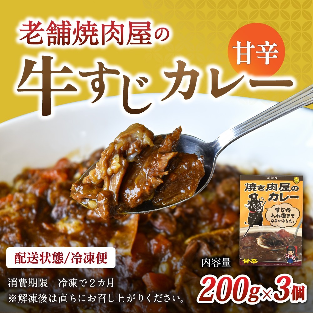 (冷凍)味園特選牛すじカレー200g×3個 国産黒毛和牛 高級ギフト/焼肉ホルモン味園 カレー 奈良県 葛城市【ajen002】