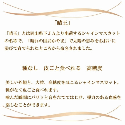 - <2025年7月より発送>岡山県産 シャインマスカット 晴王 2kg(3房~6房)_ シャインマスカット ふるさと納税 ぶどう 葡萄 ブドウ マスカット 果物 くだもの フルーツ 産直 岡山県 津山市 ギフト 送料無料 【1365938】
