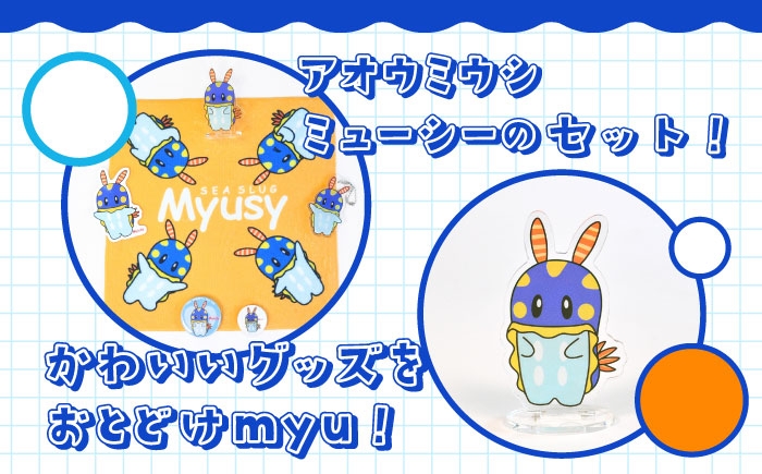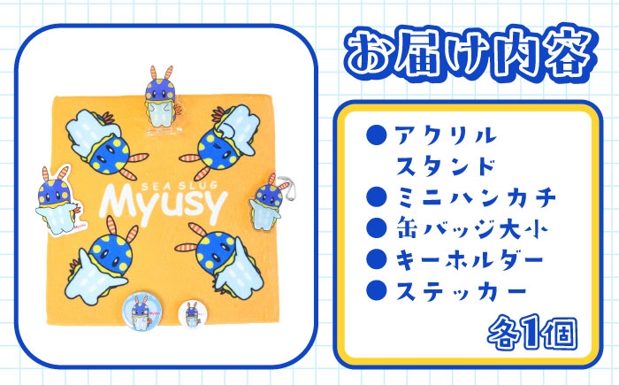 ミューシーセット小(キーホルダー1個、アクリルスタンド 1個、タオル 1個、缶バッジ大 1個、缶バッジ小 1個、シール 1枚)【Myusy project】 [ASCJ003]