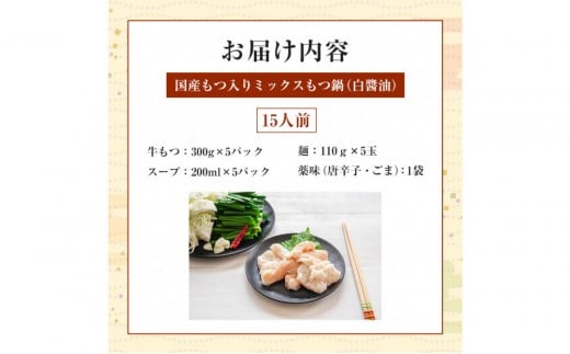- 国産もつ入りミックスもつ鍋(白醬油)15人前セット
