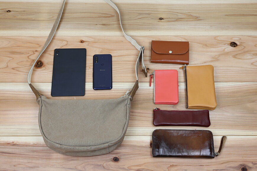 - 【ふるさと納税】 半月型のショルダーバッグ [アトリエSASSA 富山県 朝日町 34310325] ファスナー 鞄 かばん カバン 帆布 革 おしゃれ 手作り シンプル レザー