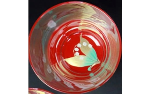 - みよし漆器本舗 ぬりもん de Verre フリーグラス 単品 210ml 蒔絵 紀州塗り 赤/スズラン