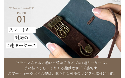 - ロールキーケース ブルー [FUCHA 石川県 志賀町 CJ5006-a] Roll Key Case イタリアンレザー プエブロレザー ハンドメイド 手縫い 革製品 本革