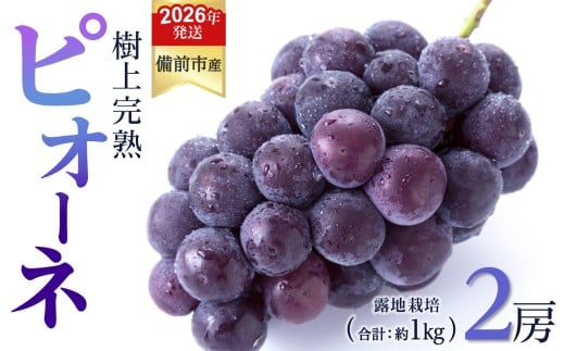 【2026年発送分 先行受付開始!】びぜん葡萄「ピオーネ」(露地栽培)2房入(令和8年8月中旬~9月中旬頃発送)【 岡山県備前市産 ピオーネ 露地栽培 2房 樹上完熟 】