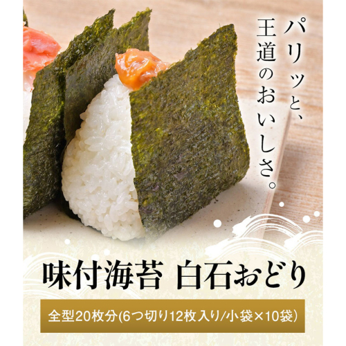 味付海苔 白石おどり 選べる種類 白 緑 青 全型20枚分 (6つ切り12枚入り 小袋×10小袋) 小林産業株式会社《45日以内に出荷予定(土日祝を除く)》岡山県 笠岡市 海苔 のり 味付海苔 味付のり 味のり ごはんのお供 海産物 乾物