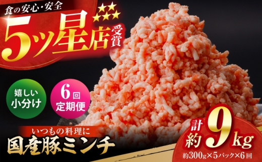 - 【6回定期便】国産 豚ミンチ 約300g×5 総計約9kg / 嬉しい小分け 挽きたて 豚肉【(有)山重食肉】 [ATAP176]