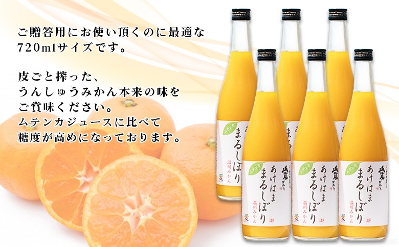 - <あけはままるしぼりみかんジュース 720ml×6本 AM-6> 温州みかん ミカンジュース オレンジジュース ソフトドリンク あけはまシーサイドサンパーク 食べて応援 贈答用 愛媛県 西予市 【常温】『最短10営業日以内に順次発送予定』