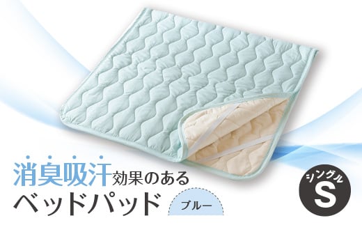 消臭吸汗効果のあるベッドパッド ブルー【1656223】