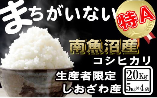 - 【令和7年産】生産者限定 契約栽培 南魚沼しおざわ産コシヒカリ20Kg(5Kg ×4袋)【2025年10月上旬より順次発送予定】