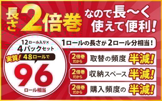 - ふんわりやさしい 長さ2倍巻き 50m ダブル12ロール×4パック 計48ロール【11月発送】トイレットペーパー 日用品 日用雑貨 紙 生活必需品 備蓄 災害 防災 まとめ買い