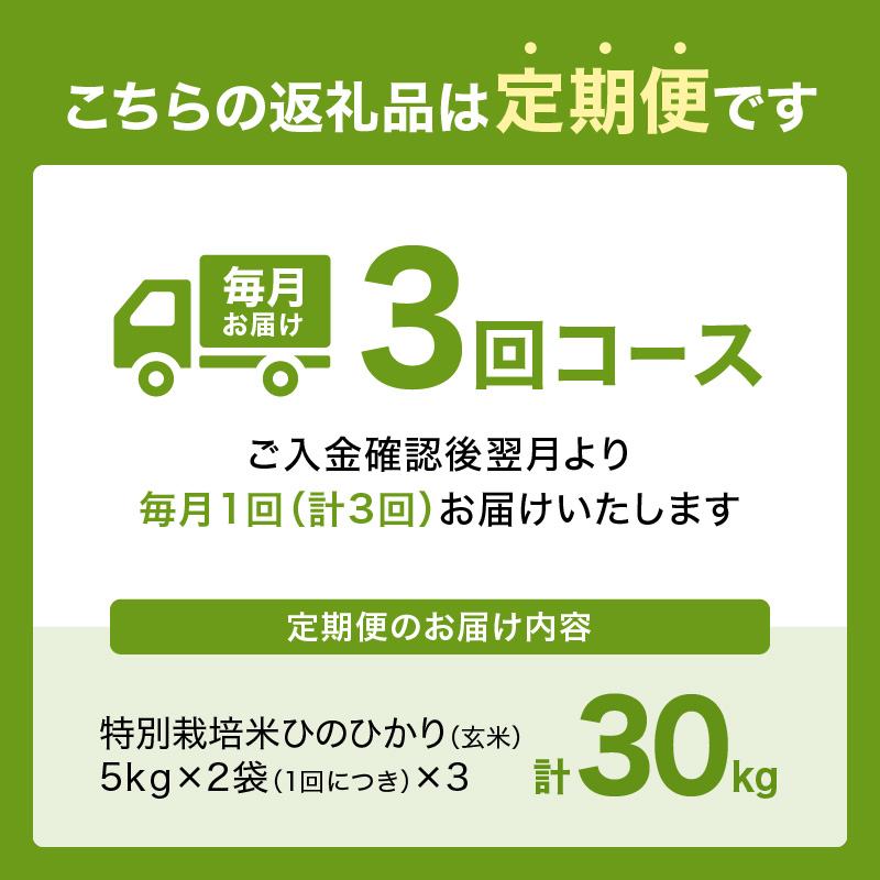 【定期便3か月】<特別栽培米>京都府木津川市産ひのひかり 玄米30kg(10kg×3回) 毎日の健康に