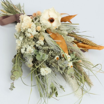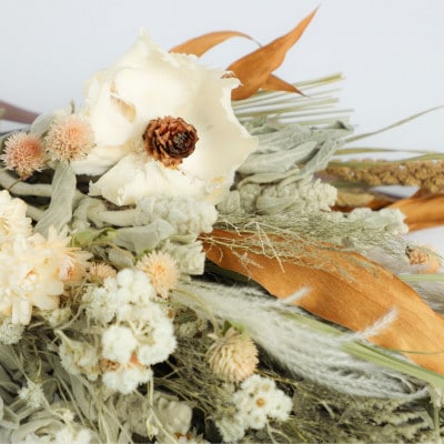 信州八ヶ岳の麓から贈るドライフラワースワッグ LL(ホワイト&ブラウン)【1662058】
