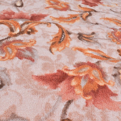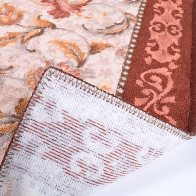 - 日本製 廊下カーペット 80cm×120cm 【オリエンタル更紗】 滑り止め加工 (エンジ)【1663959】