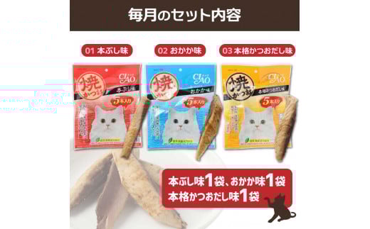 - 【3回定期便】キャットフード いなば チャオ・焼かつお 全3風味(5本入×3袋セット)定期便 3か月 ペットフード 猫 ねこ ネコ スティックタイプ 消臭 カツオ 魚肉 ごはん おやつ ご褒美 安心 国産品 高知県 土佐清水市【J00094】