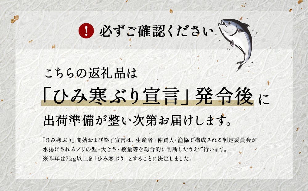 - 【先行予約】【期間限定】氷見の寒ぶり一本(三枚おろし)真空パック【ひみ水産】※配送エリア限定※
