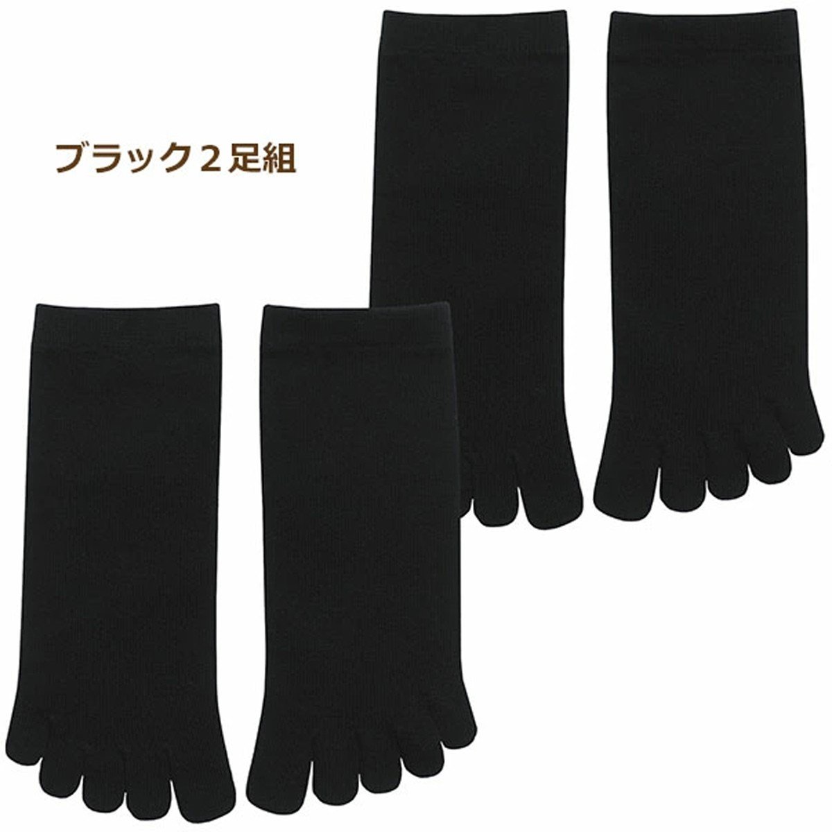 靴下 日本製 5本指 五本指 ソックス レディース ロークルー丈 2足 セット 表糸綿100% 口ゴムゆったり 無地 23~25cm 女性 婦人 五本指靴下 くつした くつ下 2足組 シンプル ブラック グレー ココア 足