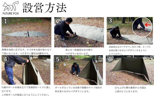 - FUTURE FOX 陣幕 全2色(オリーブ・ブラック)[FF04] // FUTURE FOX 陣幕 高さ120cm ロープなしで自立 TC素材 ウインドスクリーン 焚き火陣幕 焚火陣幕 風よけ 目隠し 【南信州発アウトドアブランド】