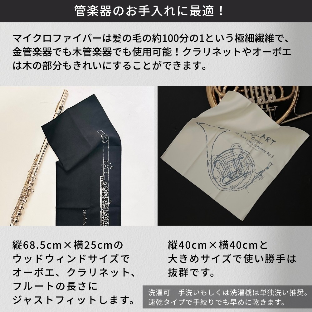 - 管楽器 のための マイクロファイバークロス 長方形〈オーボエ柄 アイボリー〉 【管楽器専門店 マール・ミュージック オリジナル】管楽器の お手入れ に