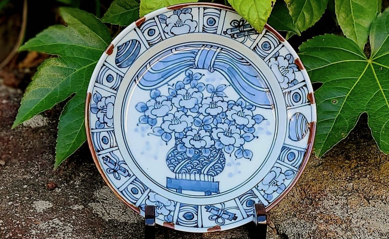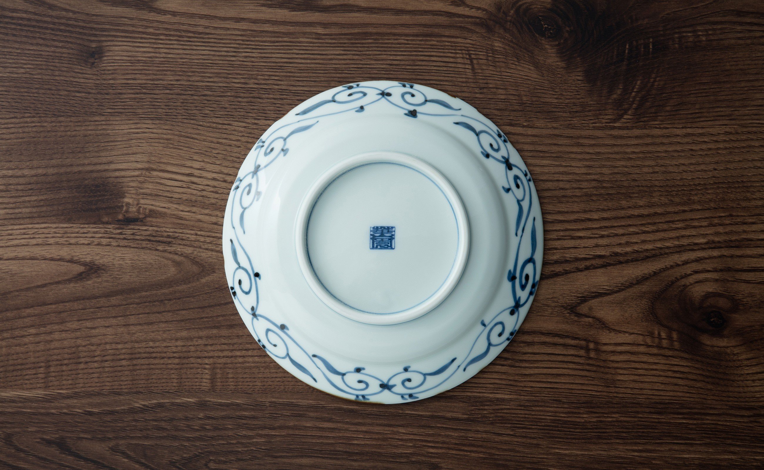 有田焼 渕錆藍椿縁紋様図 21cm 皿 ~華一園シリーズ~【西山錦華堂】食器 器 うつわ 皿 プレート 牡丹 手描き 50000円 5万円 A50-297