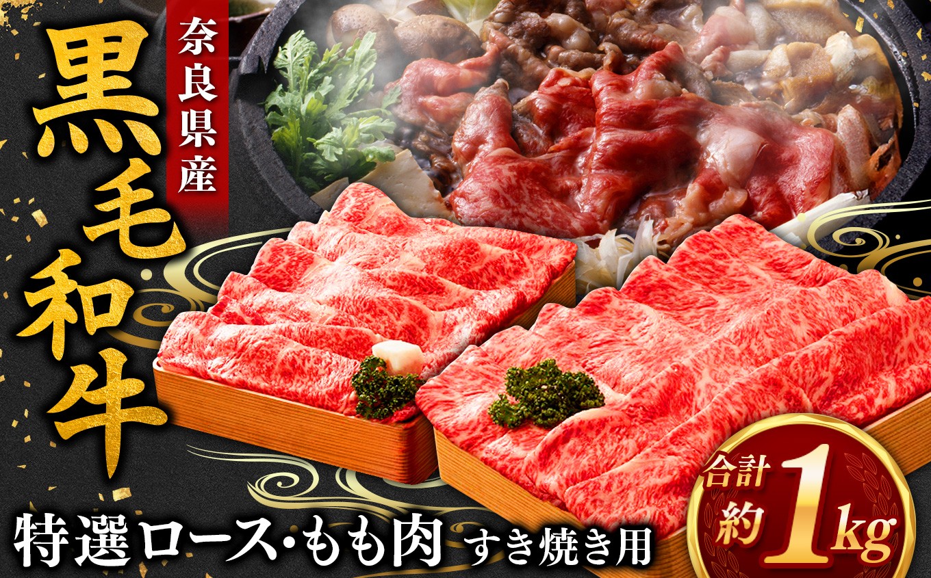 J08 黒毛和牛 ロース もも すき焼き 用 (各 500g )計 1kg 【 毎月 数量限定 】 | 肉 にく ニク お肉 おにく オニク ミート うし 牛肉 和牛 和牛ブランド ブランド牛 もも肉 もも ロース肉 お取り寄せ グルメ やわらかい 赤身 うま味 おいしい ジューシー 格別 極上 おうち時間 贅沢 堪能 和食 お祝い すきやき 冷凍 奈良県 御杖村
