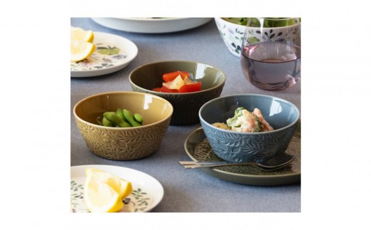 【ふるさと納税】【波佐見焼】PATTERNED シリーズ ecru 4点セット【BIRDS’ WORDS】 [CF018]