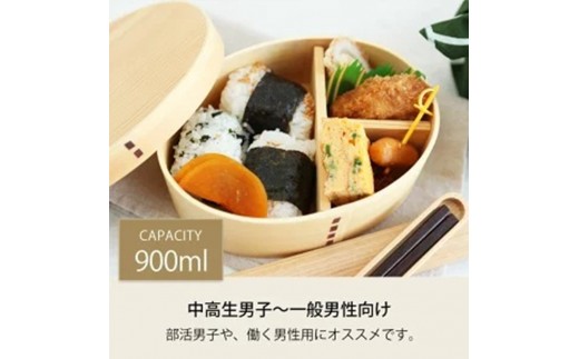 - 【選べるカラ―・塗り】みよし漆器本舗 曲げわっぱ お弁当箱 900ml 約19×15×高さ6.1cm 小判型 北欧風 英字ロゴ 白木 漆塗り