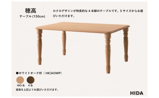 【飛騨の家具】HIDA 穂高 テーブル 幅150(HK343WP)|家具 机 テーブル リビング 木製 おしゃれ 人気 おすすめ 国産 飛騨家具 飛騨産業 CG417