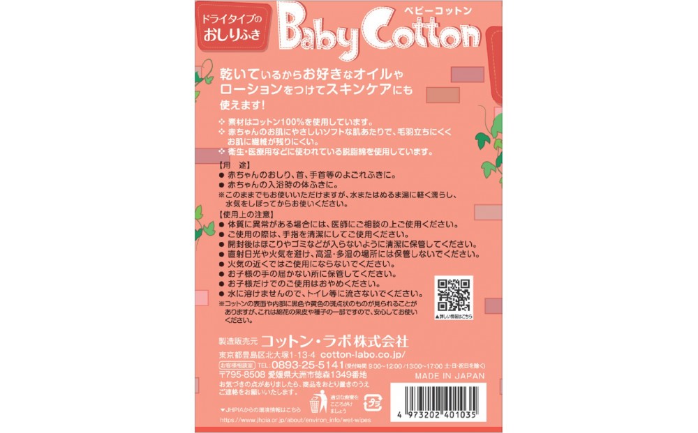 - 【全4回】ベビーコットン 420枚×2個(840枚)が4回全部で3360枚届く