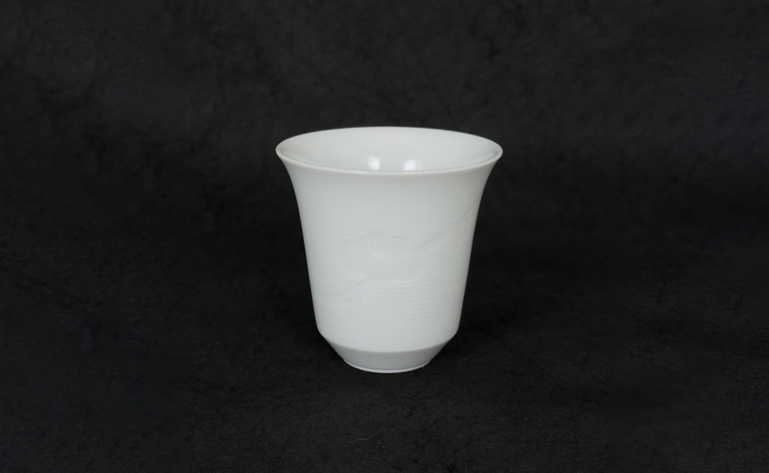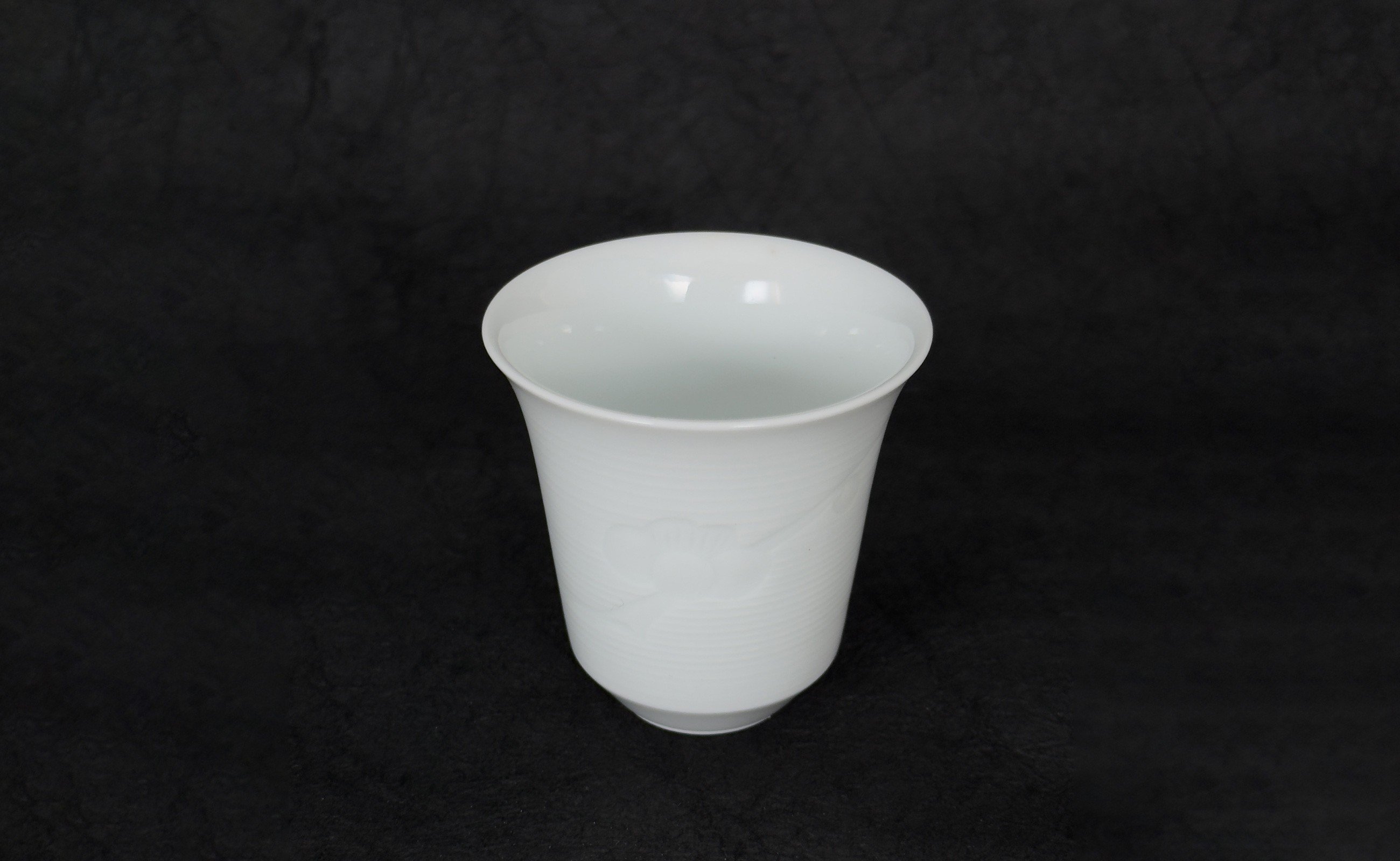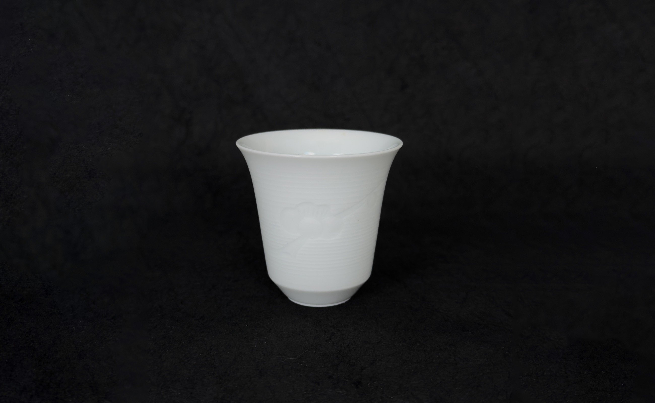 - 有田焼 奥川俊右ェ門作 梅文ぐい吞み(反)【奥川俊右ェ門窯】 伝統工芸 白磁 A75-70