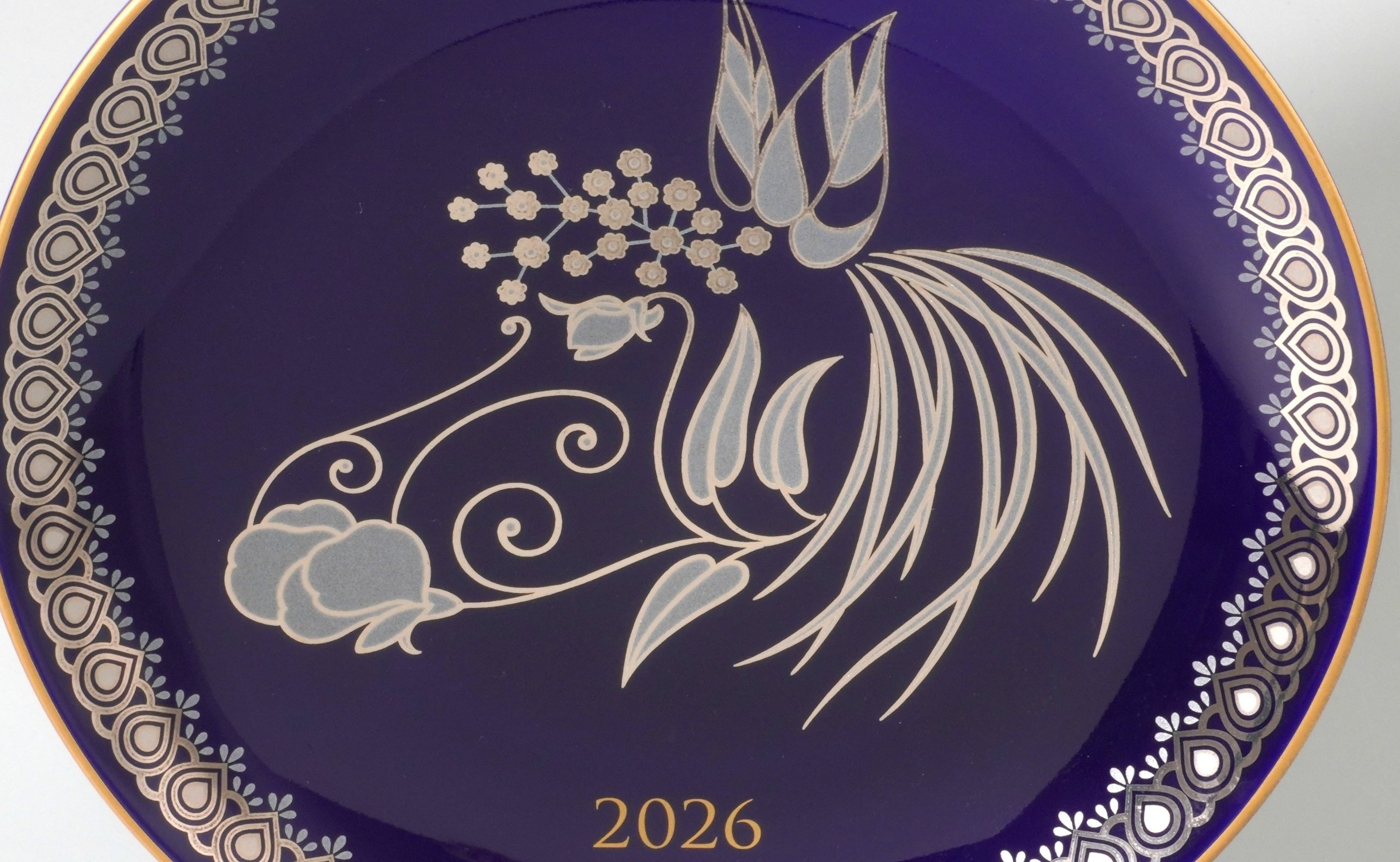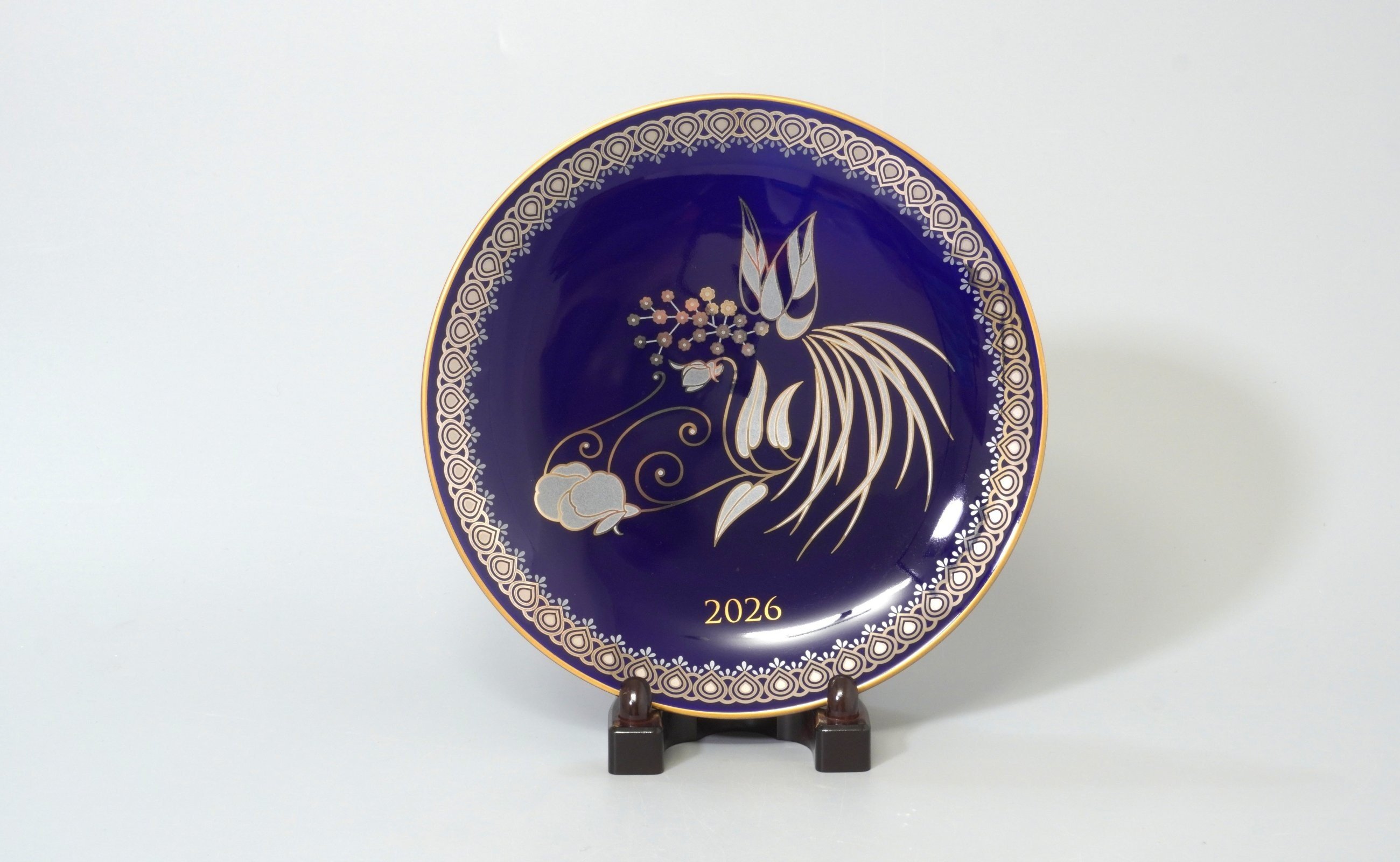 - 有田焼 数量限定 令和8年 2026 干支 午 飾り皿 【香蘭社】 瑠璃色 インテリア 磁器 うま A40-395