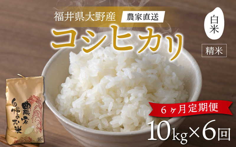 - 【令和7年産 新米】【6ヶ月定期便】福井県大野市産 コシヒカリ 白米 精米 10kg 農家直送