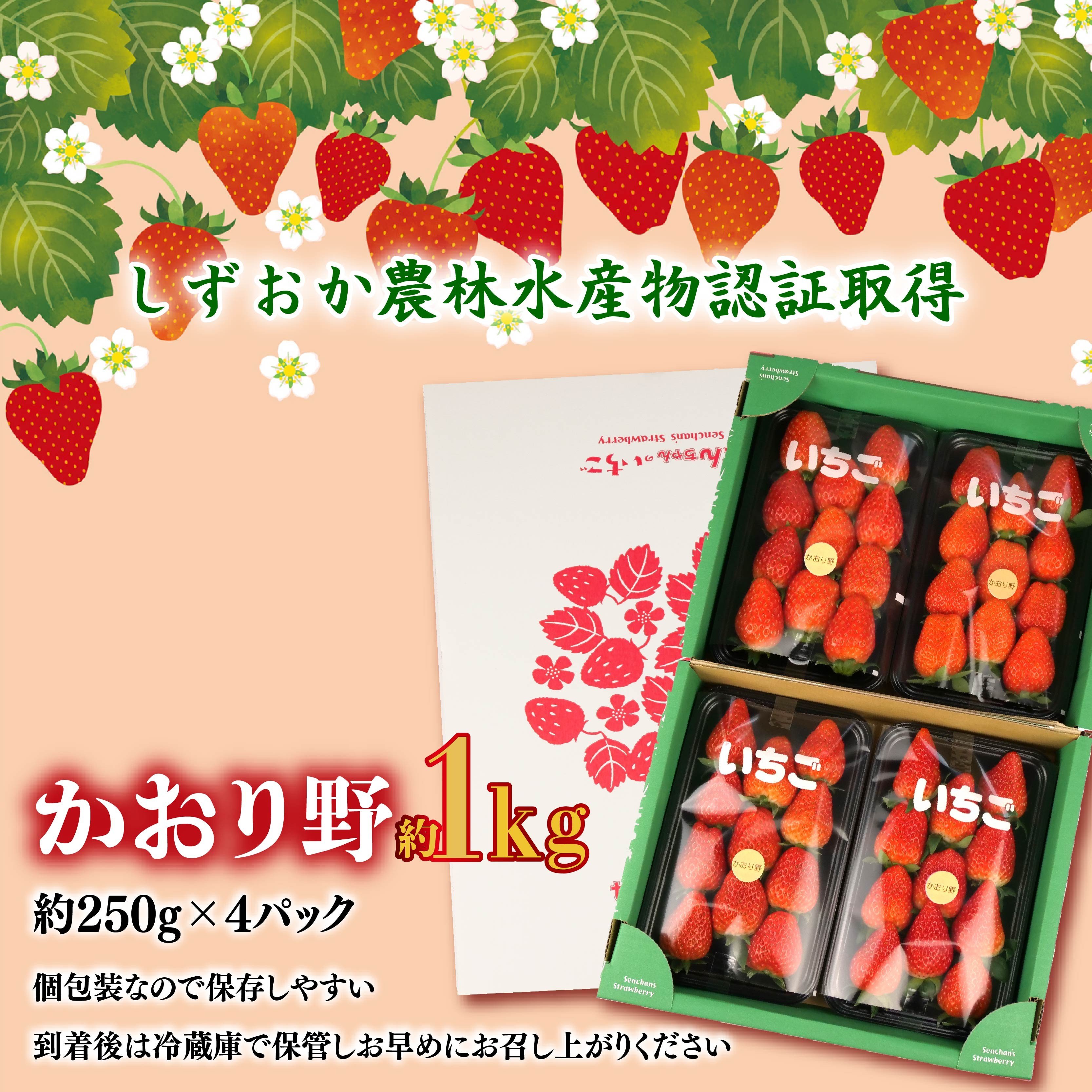 【 2026年2月中旬から順次発送 】いちご かおり野 1kg 250g × 4パック 予約受付 期間限定 数量限定 苺 イチゴ ストベリー ベリー フルーツ スイーツ デザート くだもの 果物 果汁ストロベリー 甘い おいしい 国産 安心 濃厚 新鮮 フレッシュ 贈答用 プレゼント お歳暮 産地直送 農家直送 静岡いちご 静岡苺 牧之原いちご牧之原苺 かおりの 静岡県 牧之原市 有限会社ヤマセン