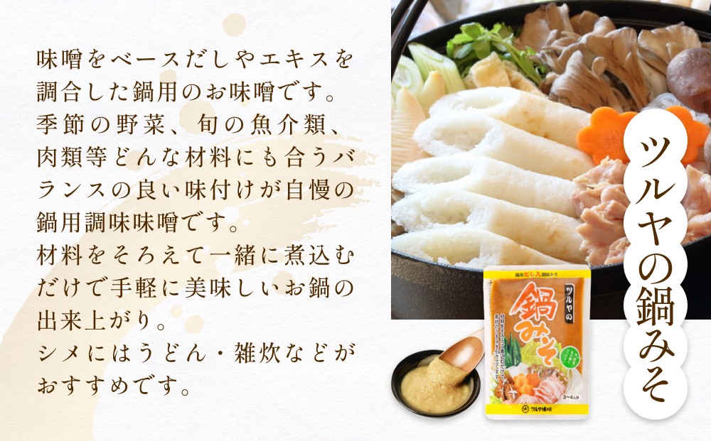 - 鍋味噌3種食べ比べセット 3種各1個( 3個 )ツルヤ味噌 鍋 発酵 熟成 富山県 氷見市