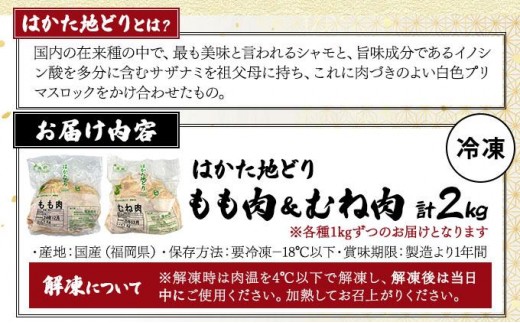- 《順次発送》はかた地どりもも肉(1kg)・むね肉(1kg)セット 計2kg|博多 地鶏 鶏肉 ブランド鶏 冷凍 とり肉 鳥肉 もも肉 モモ ムネ 胸肉 むね肉 セット 1kg CV005