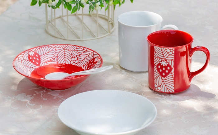 - 【波佐見焼】苺ミルク 平ボウル 〈白〉 2点セット【西海陶器】 [OA468]