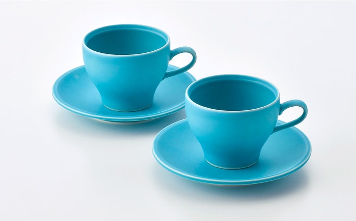 - 【波佐見焼】 コーヒーカップ&ソーサー トルコブルー 2点セット マット【福田陶器店】 [PA392]