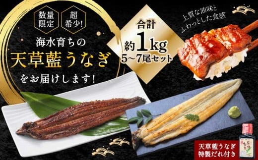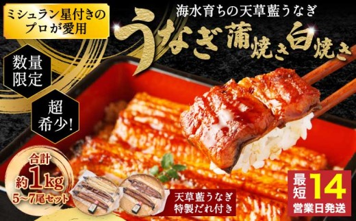 うなぎ 【ミシュラン1つ星店 採用】数量限定!! 海水育ちの天草藍うなぎ 超特大 紅白 5~7尾 セット【合計約1kg】 鰻 ニホンウナギ 惣菜 熊本県産 九州 国産 冷凍