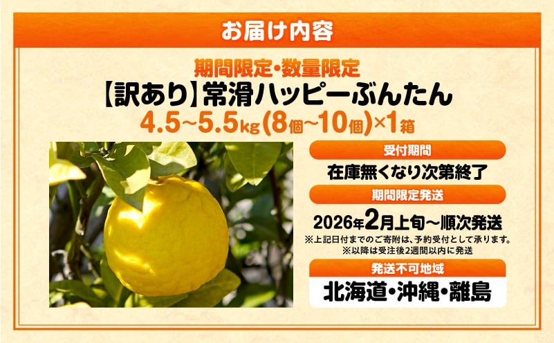 - 【訳あり】常滑ハッピーぶんたん 果物 フルーツ 柑橘 文旦 ブンタン みかん 訳あり ご家庭用 数量限定 愛知県 常滑市 知多半島