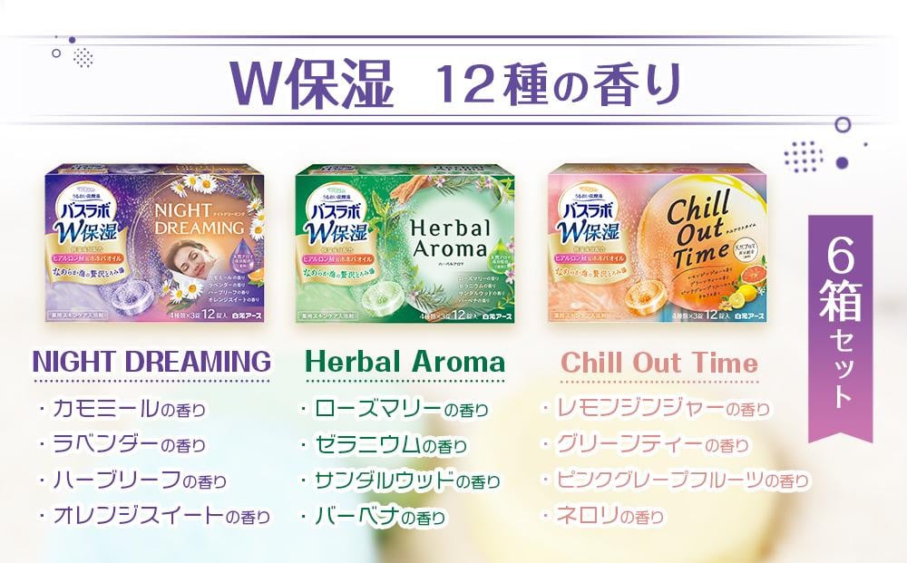 - 炭酸ガス 入浴剤 12種の香り W保湿 72回分 全6箱 各12錠入り HERS バスラボ W保湿