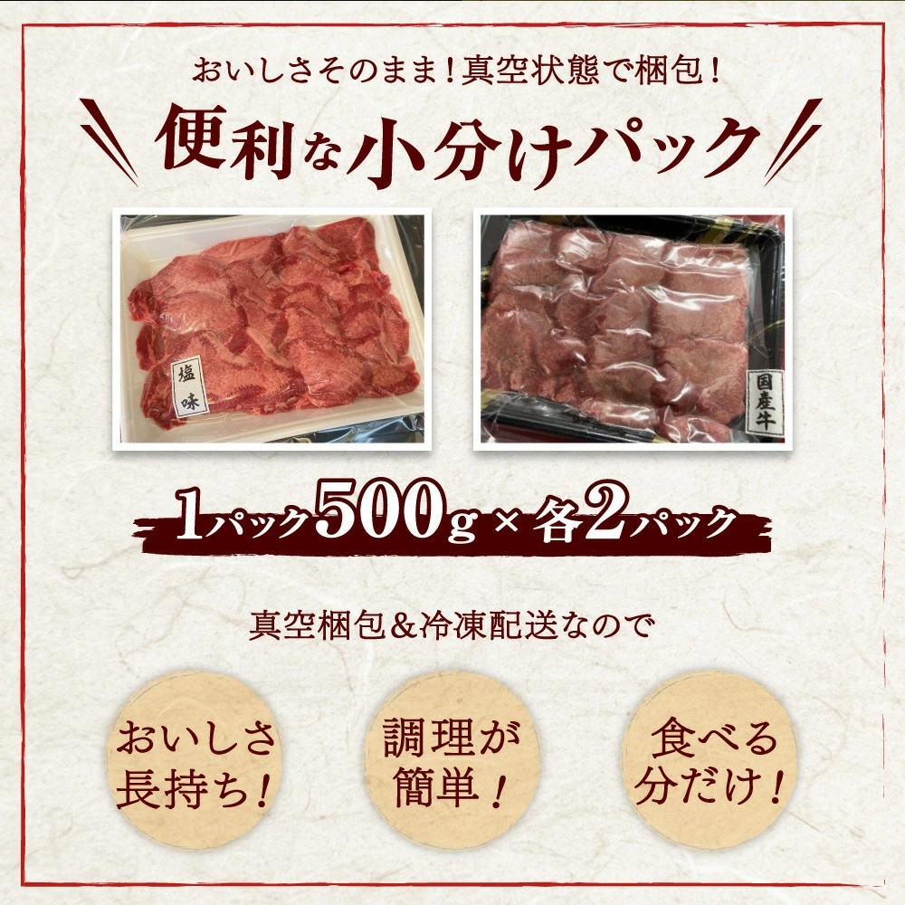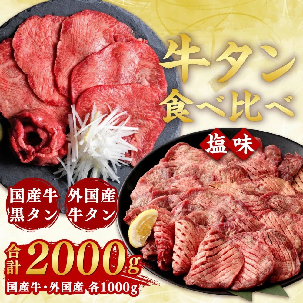 - 牛タン 各1000g 合計2kg 食べ比べセット | 国産黒毛牛 国産牛 牛肉 お肉 牛タン 黒タン タン塩 塩タン 焼肉 BBQ バーベキュー さとう精肉店 冷凍 三戸町 青森県 送料無料