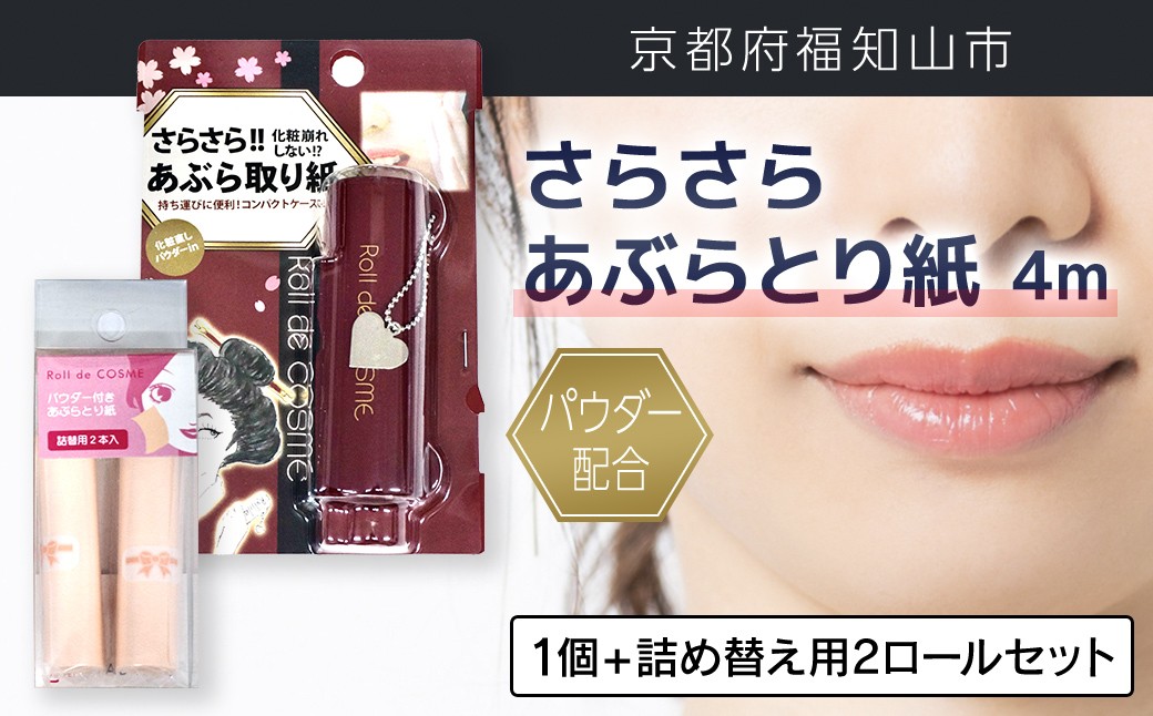 - パウダー配合 さらさら あぶらとり紙 4m 【選べる内容量:1個 / 2個 / 1個+詰め替え用2ロール / 1個+詰め替え用4ロール】 FCEZ009ーv
