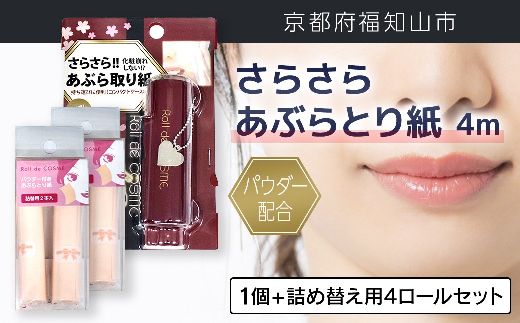 パウダー配合 さらさら あぶらとり紙 4m 【選べる内容量:1個 / 2個 / 1個+詰め替え用2ロール / 1個+詰め替え用4ロール】 FCEZ009ーv