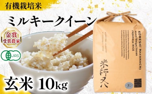 - 【 オーガニック米 】 新米 ミルキークイーン 玄米 10kg ( 令和7年産 有機JAS 認証米 オーガニック米 有機栽培米 十六代目米師又八 謹製 ブランド 米 rice ご飯 内祝い もちもち 国産 送料無料 滋賀県 竜王 ふるさと納税 )